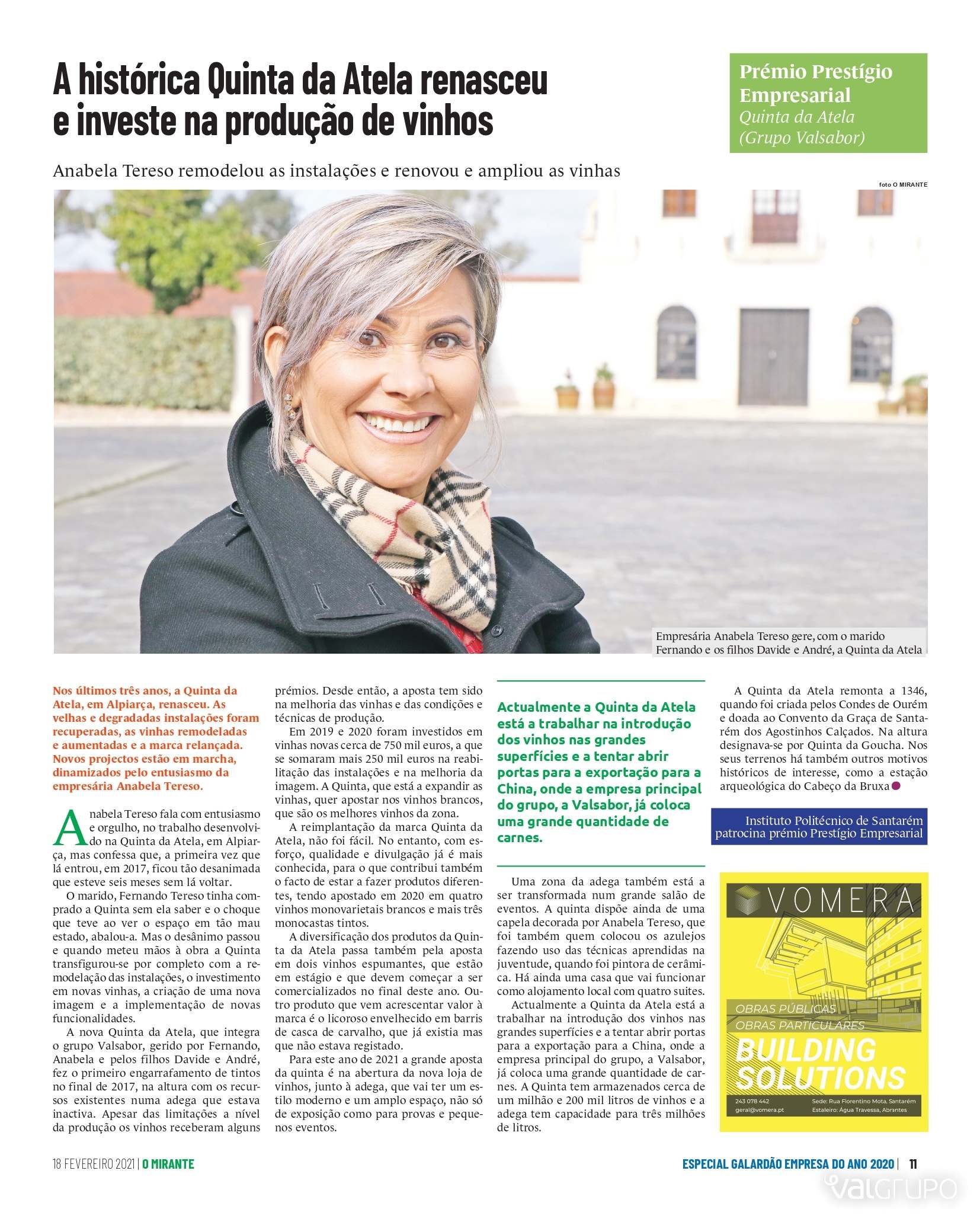 No âmbito da iniciativa realizada pelo Jornal O Mirante, a Quinta da Atela foi distinguida na categoria de Prestígio Empresarial no Galardão Empresa do Ano 2020 da região do Ribatejo!
